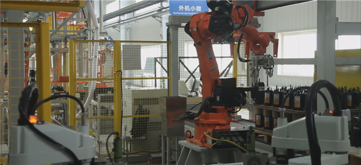 (四)自動(dòng)化下線機(jī):通過機(jī)器人完成自動(dòng)夾取產(chǎn)品、自動(dòng)堆碼、自動(dòng)取夾板等操作,全過程無人化操作,可滿足產(chǎn)品質(zhì)量在150KG內(nèi)的自動(dòng)堆垛,安定效率高。