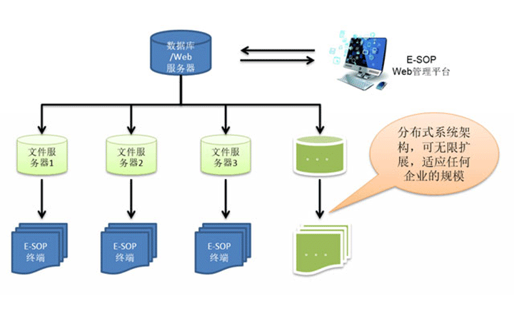 分布式的系統(tǒng)架構(gòu)和可擴展的文件服務器體系讓匯興智造E-SOP適應不同大小的企業(yè),從幾十個工位到幾萬個工位,任您搭配。