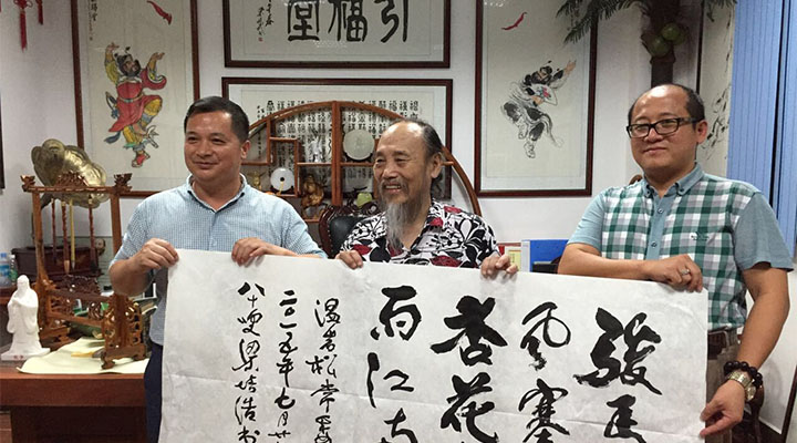 7月28日晚22點,興國縣委常委副縣長溫巖松,方太鄉(xiāng)黨委書記江華,水利局局長王捷等一行七人蒞臨我司指導(dǎo),秋風(fēng)塞上比擬著溫副縣長的遠程走訪,像春雨滋養(yǎng)著大地,匯利興集團(現(xiàn)更名:廣東匯興精工智造股份有限公司,簡稱:匯興智造)董事長鐘輝陪同,邂逅到訪的嶺南畫派泰斗梁培浩教授,并與梁老進行深刻的藝術(shù)交流。