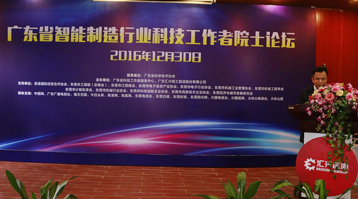 2016年12月30日上午,由廣東省科學(xué)技術(shù)協(xié)會指導(dǎo)、廣東省科技工作者服務(wù)中心和廣東匯興精工智造股份有限公司(股票代碼:839258)共同舉辦的“廣東省智能制造行業(yè)科技工作者院士論壇”在匯興智造東莞總部隆重舉行。中國工程院院士孫玉、廣東省科學(xué)技術(shù)協(xié)會副主席馮日光、廣東省科技工作者服務(wù)中心主任廖仕明、東莞市科學(xué)技術(shù)協(xié)會副主席許為豪、東莞市大嶺山鎮(zhèn)副鎮(zhèn)長蔡容穩(wěn)、東莞職業(yè)技術(shù)學(xué)院計(jì)算機(jī)系主任胡選子、江西理工大學(xué)機(jī)電工程學(xué)院書記劉政、副院長劉祚時(shí)、東莞理工學(xué)院原副書記王江水、東莞理工學(xué)院原副校長鄒小平、江西省興國縣委常委李明海、武警126師原政委趙燕清、意大利智能制造工程中心顧問高級工程師艾德羅教授、匯興智造董事長鐘輝、東莞職業(yè)技術(shù)學(xué)院副教授辛曼玉,以及來自全國各地的優(yōu)秀的智能制造行業(yè)代表200多人參加了論壇。