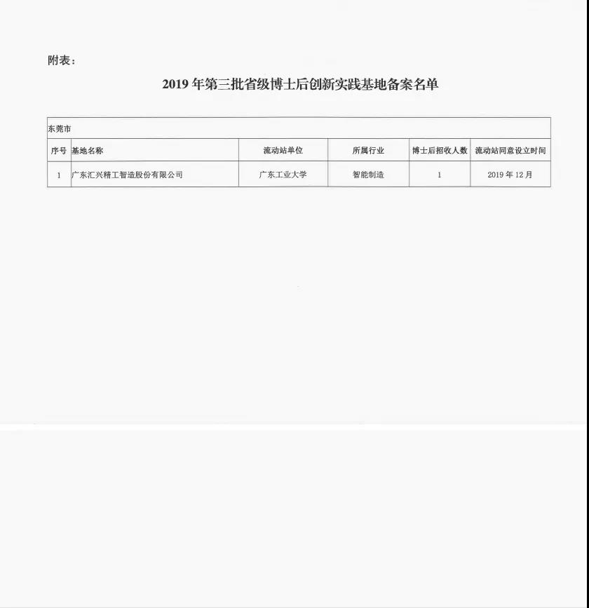 歲序剛翻新,喜訊緊相隨。日前,廣東匯興精工智造股份有限公司(簡(jiǎn)稱:匯興智造)成功通過廣東省人力資源和社會(huì)保障廳備案,與廣東工業(yè)大學(xué)合作建立“省級(jí)博士后創(chuàng)新實(shí)踐基地”,為博士后科研平臺(tái)建設(shè)再添“生力軍”。