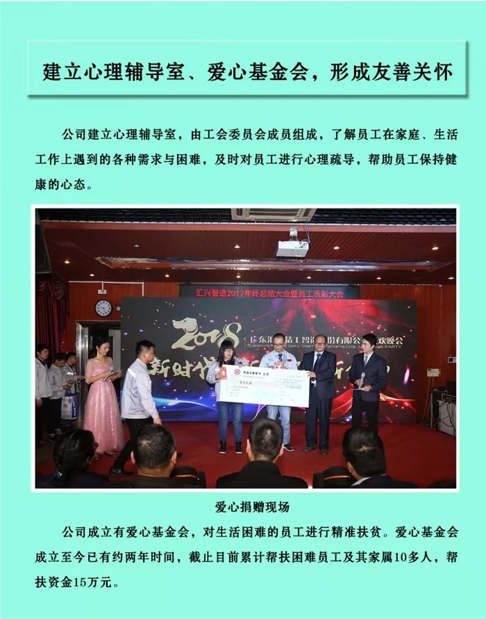 如果信念有顏色,那一定是中國紅!無償獻(xiàn)血是無私奉獻(xiàn)、救死扶傷的崇高行為,是我國血液事業(yè)發(fā)展的強(qiáng)大助力和保障。匯興智造作為東莞市首批10家“友善企業(yè)”之一,始終在堅(jiān)持以人為本,注重人文關(guān)懷的同時(shí),致力于將“友善”的價(jià)值觀、理念融入公司日常活動(dòng)中,通過快樂工作,幸福生活的獨(dú)具特色的“友善文化”和“一個(gè)行業(yè) 一個(gè)家庭 一所學(xué)校 一支軍隊(duì)”的人文理念,把社會(huì)主義核心價(jià)值觀融入到員工思想教育工作之中;夯實(shí)“友善企業(yè)”基礎(chǔ)、打造“友善環(huán)境”陣地、構(gòu)建友善勞動(dòng)關(guān)系。在點(diǎn)點(diǎn)滴滴中融合、滲透,全方位落地生根,營造和諧友善氛圍和人文環(huán)境,積極提升員工的幸福感和自豪感,讓員工在公司平臺(tái)上充分展現(xiàn)自我,實(shí)現(xiàn)自身價(jià)值,創(chuàng)享更加美好的生活。
